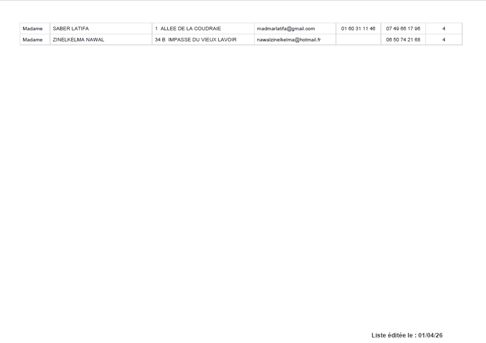 Liste des assistantes maternelles :